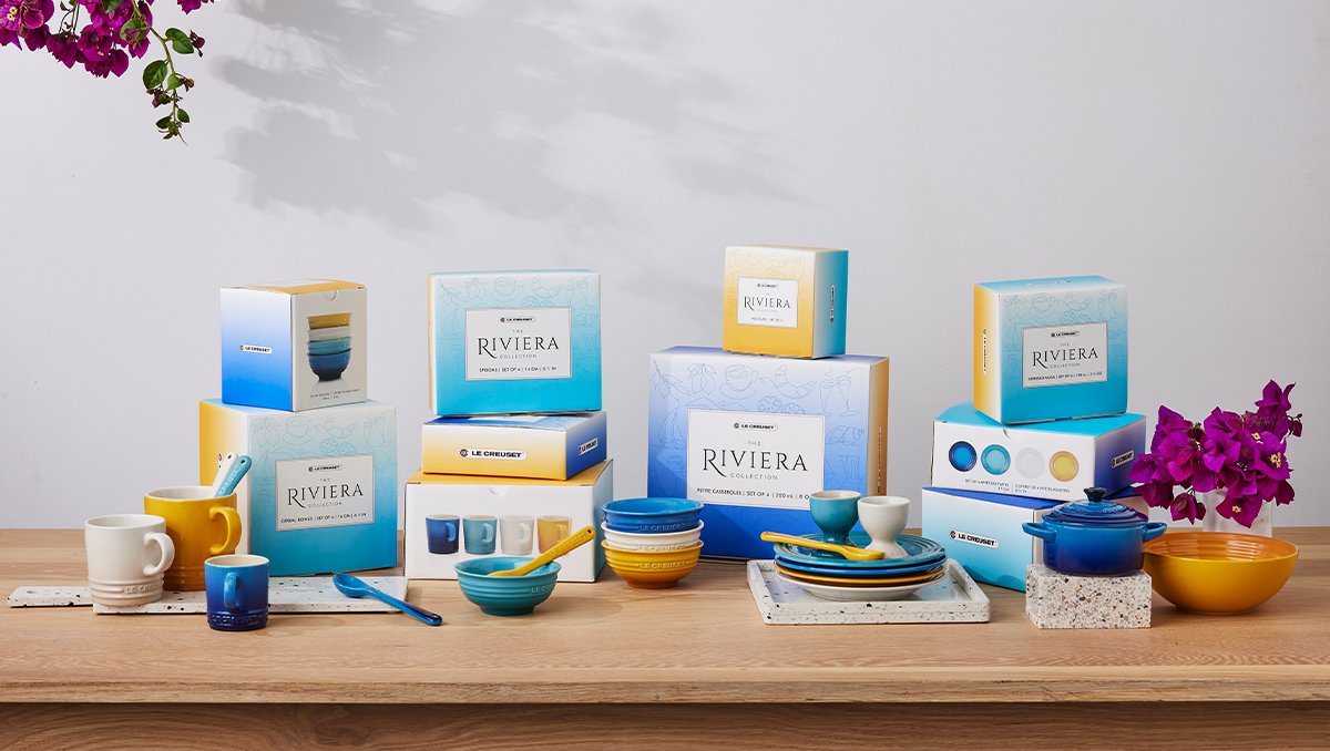 Evocando o pôr do sol lançando sombras sobre a mesa de jantar quente e amena, as cores vivas e limpas da Coleção Riviera proporcionam uma sensação de verão incomparável. Apresentando Azul Caribe, Meringue, Azure e Néctar, evoca férias ao sol e a rica herança culinária da região.