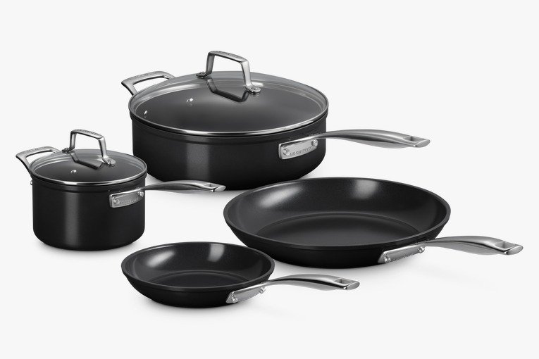 O Conjunto de Panelas de Cerâmica Antiaderente Essential, com 4 peças, apresenta algumas das nossas panelas e frigideiras mais vendidas.