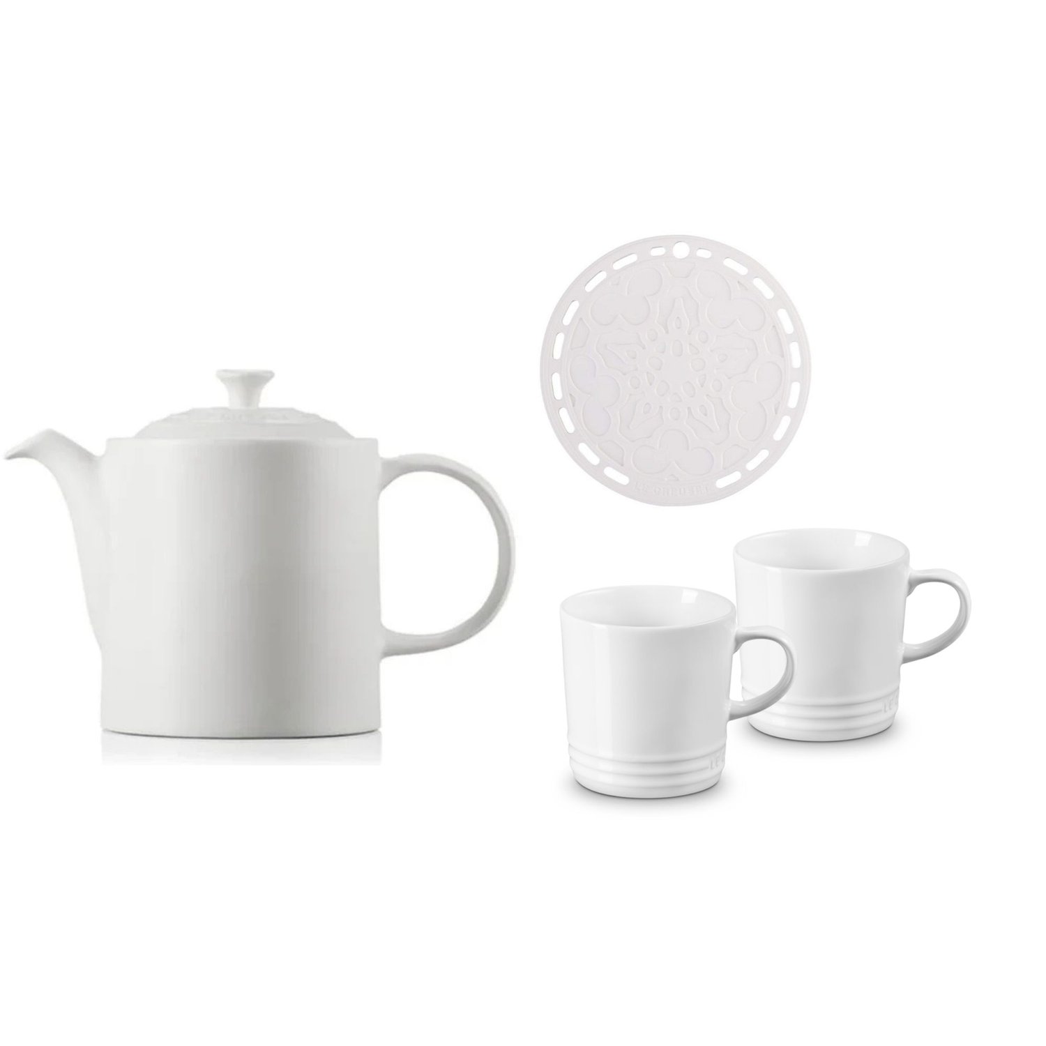 Suporte de Silicone Mandala Le Creuset BrancoCor: BRANCOBule de Cerâmica 1,3L Le Creuset BrancoCor: BRANCO Tamanho: 1,3LCaneca para Chá Le Creuset Branco 350 mlCor: BRANCO Tamanho: 350ML | Quant: 2x