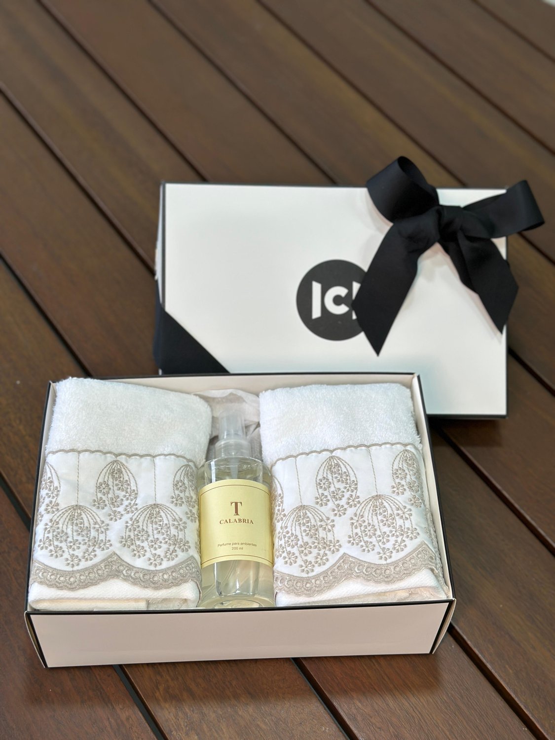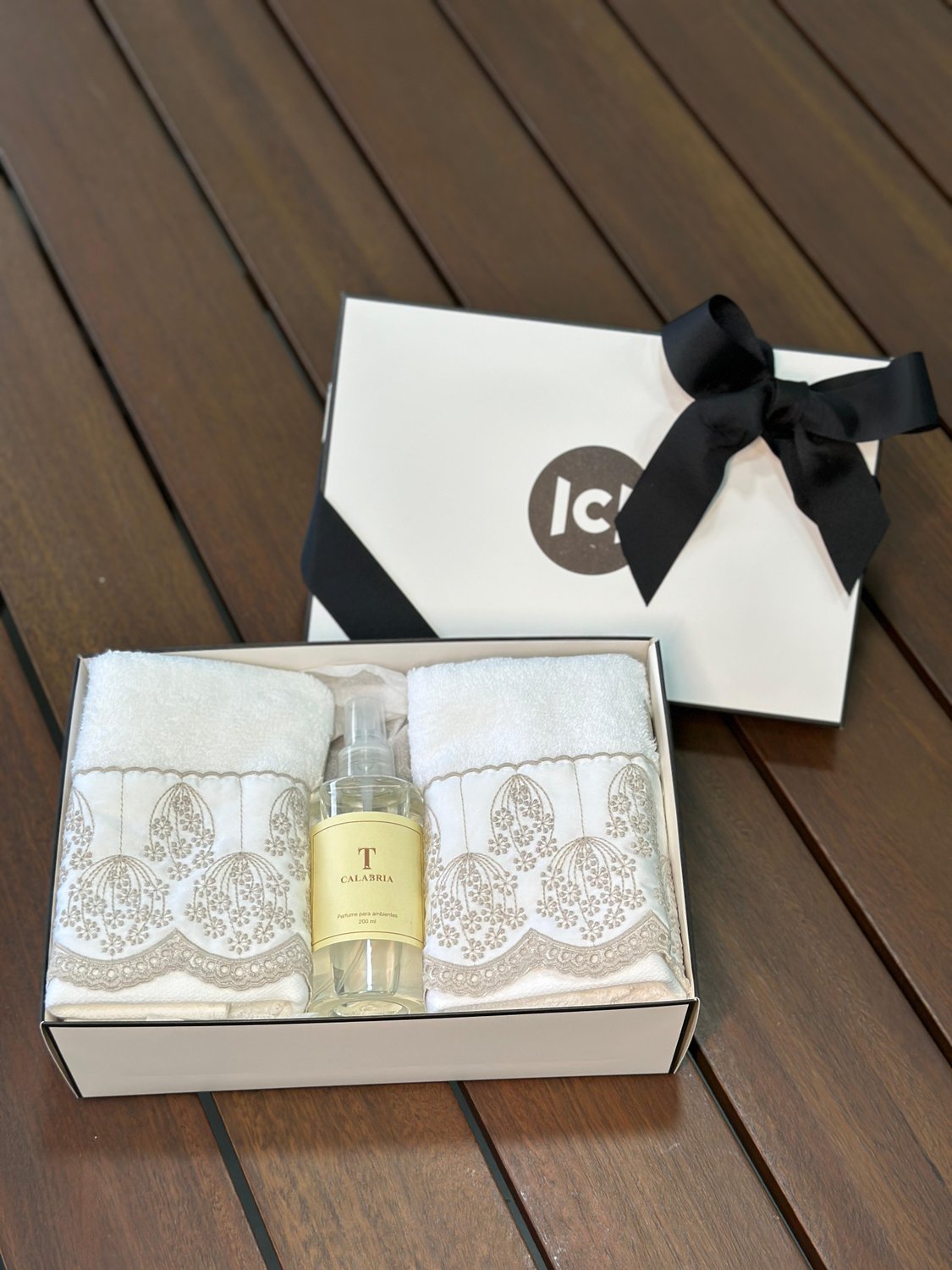 Caixa para Presente P LCL Home 27 x 18 x 9 cmCor: BRANCO/PRETO Tamanho: PJogo De Lavabo 2 Peças Sortidas Raffinato Trussardi 30 x 50 cmCor: SORTIDO Tamanho: 30X50Perfume de Ambiente Trussardi Calabria 200 mlTamanho: 200ML