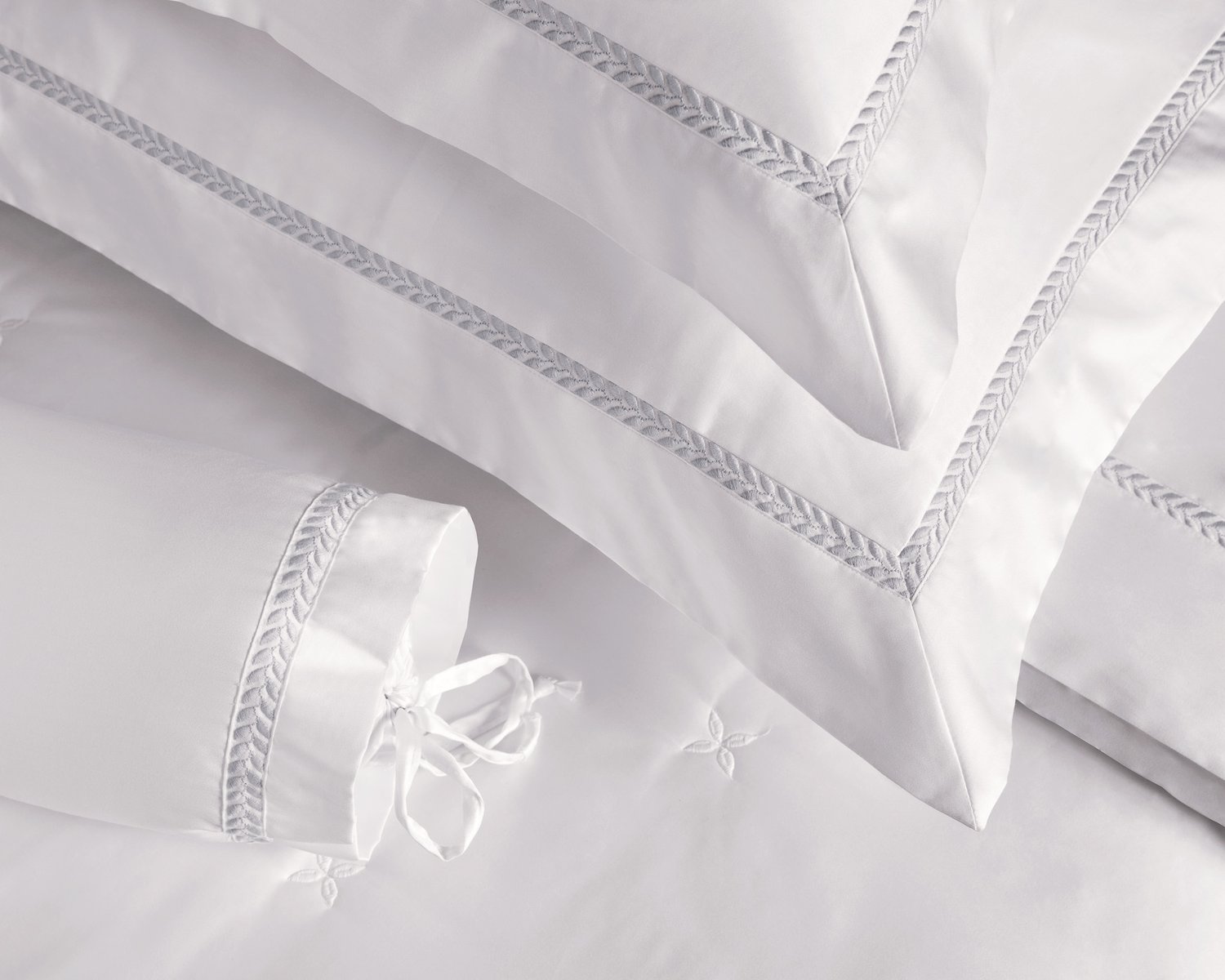 A pitoresca Cinque Terre nasce das rochas à beira-mar, e ao caminhar entre elas, avistamos folhas balançando ao vento soprado pelo mar. A cama Montale, em 600 fios, traz uma elegância romântica equilibrada em seu entremeio aplicado manualmente, criando uma rotina sublime.