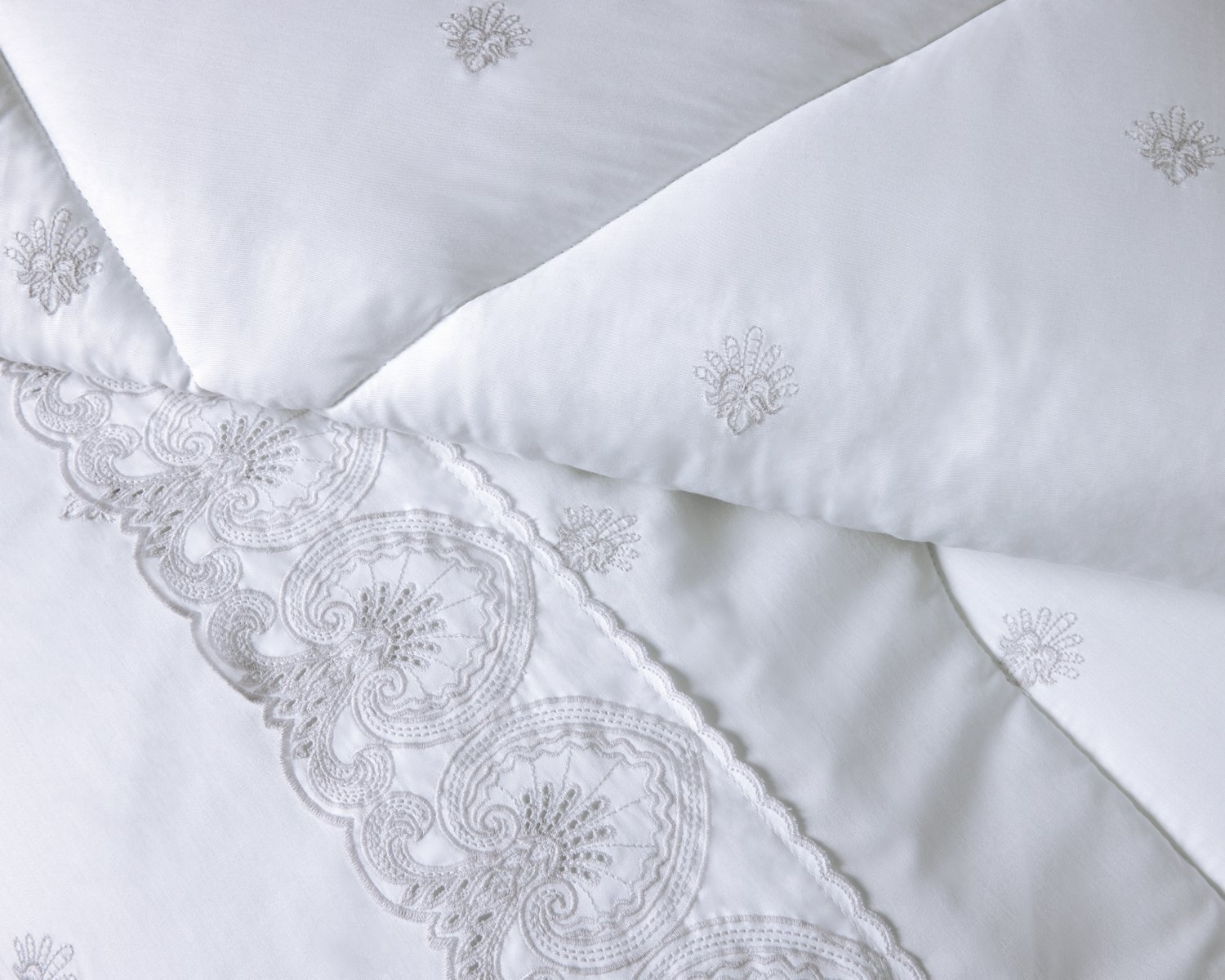 Inspirada na majestosa Piazza della Signoria, a Fronha avulsa Signoria é a personificação da sofisticação e do primor. Confeccionada em cetim 300 fios de puro algodão egípcio, sua textura macia e acetinada oferece um toque de luxo incomparável. Com medidas 50cm x 70cm, o design conta com três abas, acabamento com tira bordada aplicada e o elegante canto borboleta, que traduzem o cuidado artesanal em cada detalhe. Na combinação clássica de branco e platino, essa peça exala a atemporalidade e o charme de Firenze, elevando a decoração e o conforto do seu quarto.