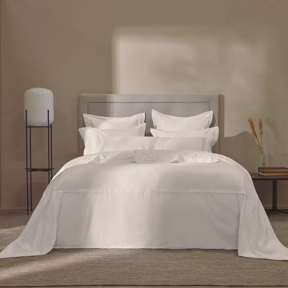 A Fronha Trussardi Vercelli possui estilo básico e elegante. O tecido 100% Algodão Egípcio é confeccionado em cetim 300 fios, passa pelo processo de sanforização e mercerização que deixa o seu toque mais suave e macio, tornando seu descanso ainda mais proveitoso. Seu design com pala dupla aplicada dá charme ao ambiente. Cama Vercelli torna-se um atemporal em 300 fios de fácil coordenação, inspirado em construções de alfaiataria, tornando a composição da cama clássica e elegante.