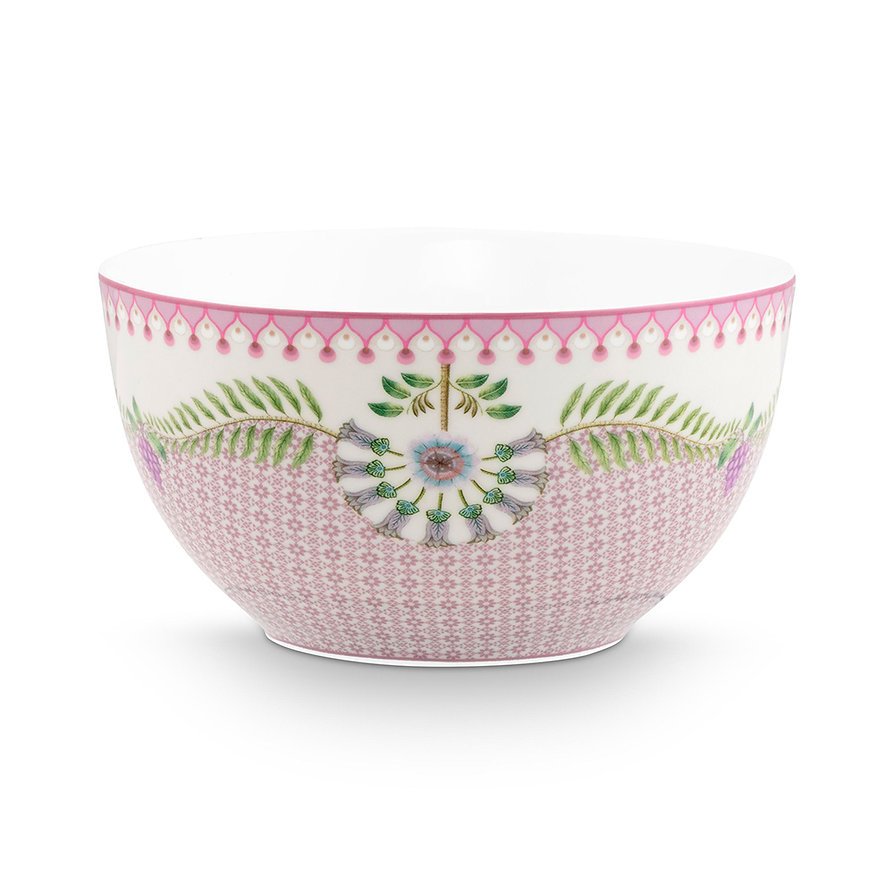 Esta tigela faz parte da nossa coleção Lily & Lotus. A tigela é decorada com pequenas flores gráficas. As flores e samambaias graciosas são colocadas simetricamente, dando a esta tigela um toque moderno. Lily & Lotus é a primeira louça da coleção Pip Studio que pode ser lavada na máquina de lavar louça, no micro-ondas e no forno.