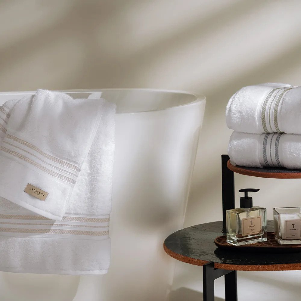 Inspirada na rotina desacelerada e nos rituais leves da Sicília, a coleção de banho Trussardi valoriza o bem-estar nos momentos mais simples do dia. Cada toalha, roupão e acessório carrega o cuidado dos detalhes: tramas macias, alta absorção e acabamento refinado. As cores evocam paisagens naturais, cerâmicas artesanais e a luz dourada do Mediterrâneo, criando uma conexão sensível entre funcionalidade e beleza. Mais do que peças para o cotidiano, são escolhas que transformam o banho em um instante de reconexão. Assim como na cultura siciliana, onde o viver é um ato de presença, essa linha convida a apreciar o toque, o silêncio e o conforto. Um luxo sereno, que envolve o corpo e acalma os sentidos com suavidade.