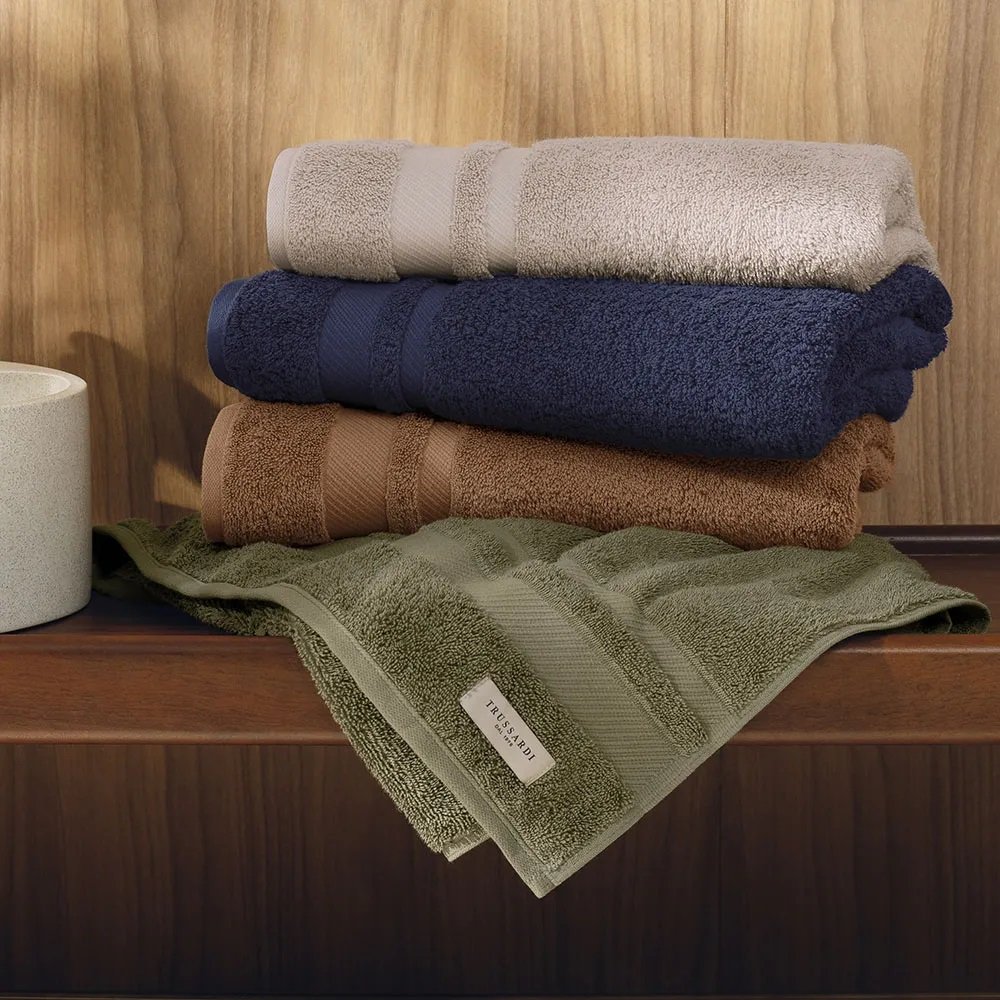 Inspirada na rotina desacelerada e nos rituais leves da Sicília, a coleção de banho Trussardi valoriza o bem-estar nos momentos mais simples do dia. Cada toalha, roupão e acessório carrega o cuidado dos detalhes: tramas macias, alta absorção e acabamento refinado. As cores evocam paisagens naturais, cerâmicas artesanais e a luz dourada do Mediterrâneo, criando uma conexão sensível entre funcionalidade e beleza. Mais do que peças para o cotidiano, são escolhas que transformam o banho em um instante de reconexão. Assim como na cultura siciliana, onde o viver é um ato de presença, essa linha convida a apreciar o toque, o silêncio e o conforto. Um luxo sereno, que envolve o corpo e acalma os sentidos com suavidade.