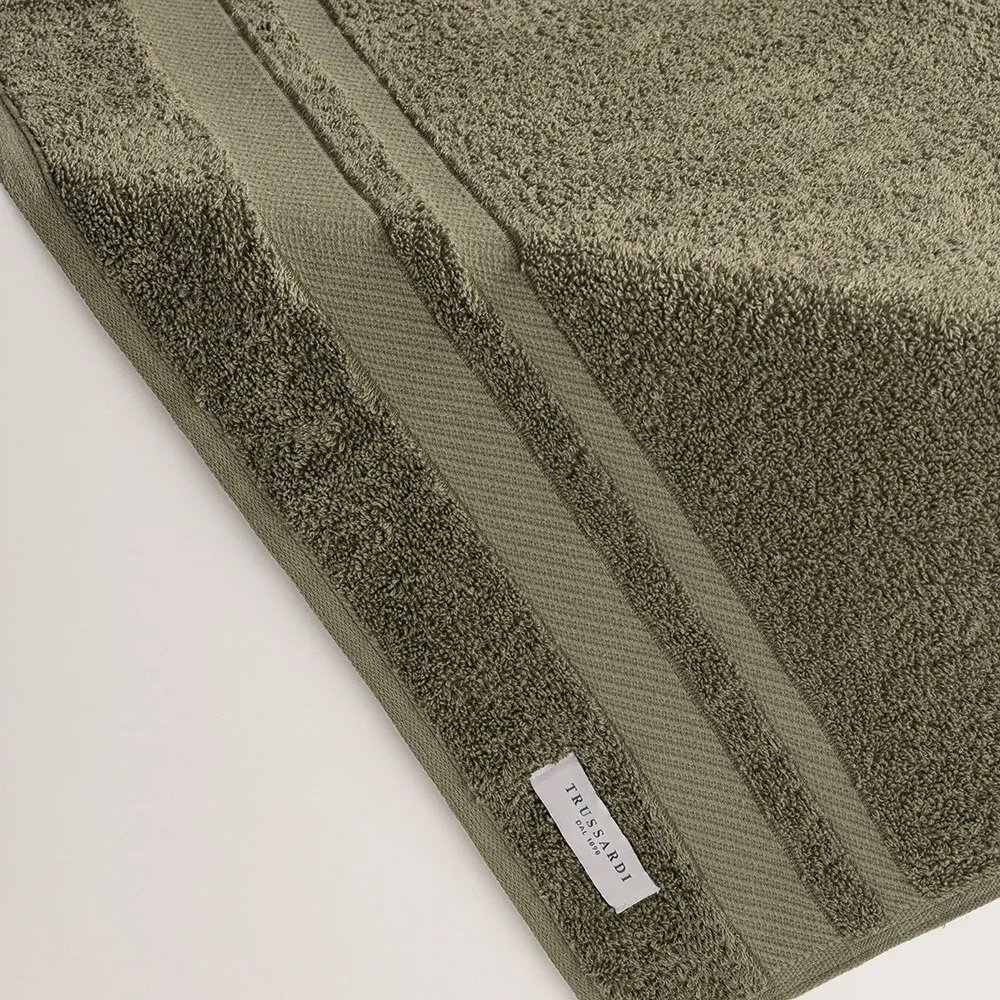 INFORMAÇÕES DO PRODUTO Marca Trussardi Cor Oliva Linha Lorezi Medida 0,86 m x 1,50 cm Material 100% algodão Gramatura 560 g/m² Acabamento Oferece toque encorpado, super absorção e maciez incomparável desde o primeiro uso. CUIDADOS E USO Lavar com temperatura máxima de 60°C Não alvejar Secar com temperatura baixa Passar com temperatura média máxima Não limpar a seco.