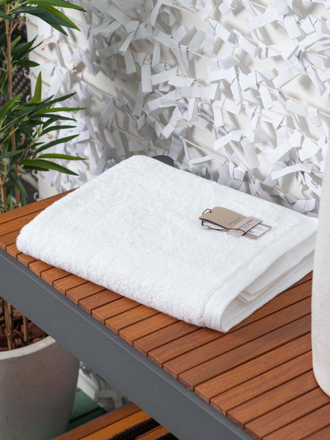 Acabamento | Super absorção, Pré-encolhida, Fio penteado de baixa torção, Tecnologia Cotone Speciale |