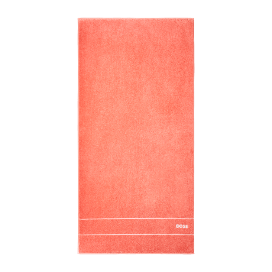 A linha de toalhas Plain afirma o espírito colorido e esportivo. O logotipo branco contrastante identifica nas cores mais básicas até as mais distintas. A trama de laços curtos e justos confere à toalha uma sensação densa e revigorante. Toalhas feitas em algodão de fibra longa, 600g/m2.