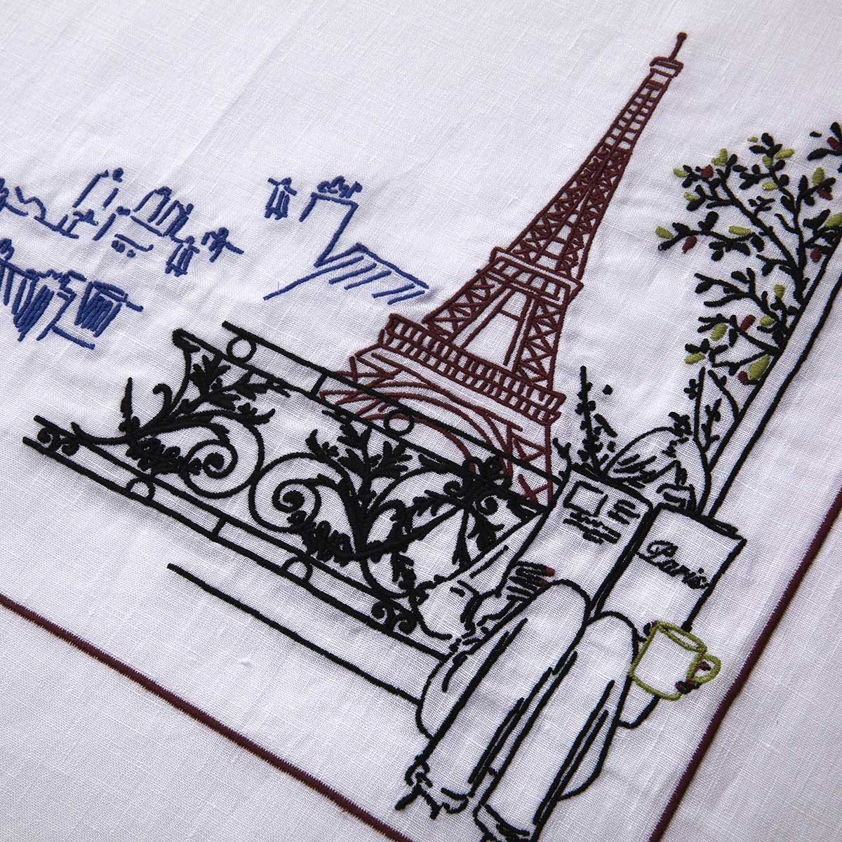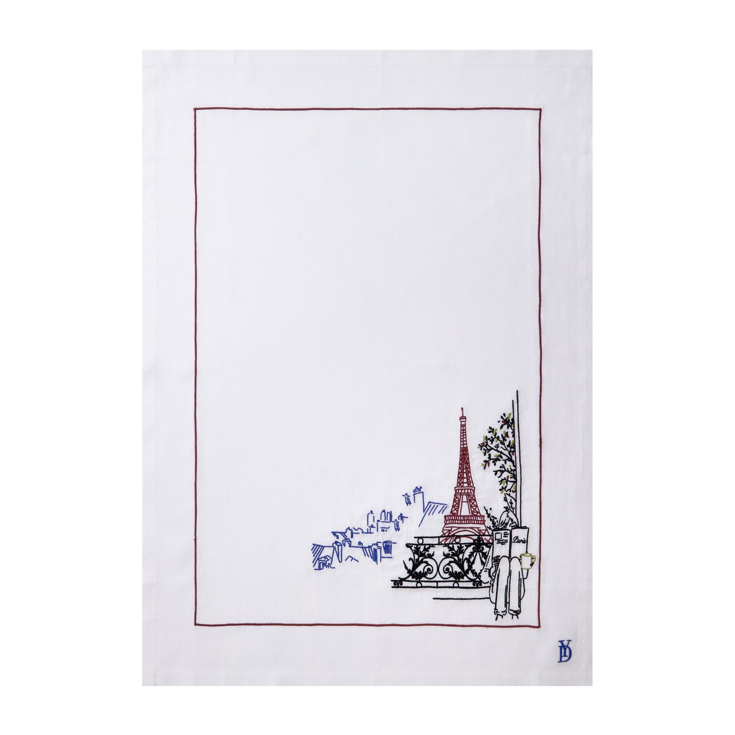 Toalha para chá ou copa da marca Yves Delorme Paris, produzida na Itália. Confeccionada em 100% linho branco, possui detalhe bordado da torre Eiffel e outros pontos de Paris.