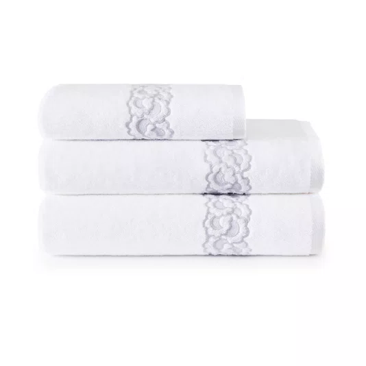 INFORMAÇÕES DO PRODUTO Marca Yves Delorme Paris Modelo Festons Cor Branco e Cinza Origem Turquia Material 83% algodão orgânico / 17% modal Gramatura 450 g/m² Medidas 45 x 70 cm Conteúdo 01 toalha de lavabo