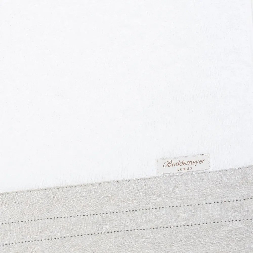 Elegante aplicação de linho com ajour emolduram a toalha Linó com delicada beleza. A simplicidade do design realça a nobreza do tecido. O toque ultra macio do algodão egípcio promove extremo conforto, com qualidade superior. Exclusividade Buddemeyer Luxus.