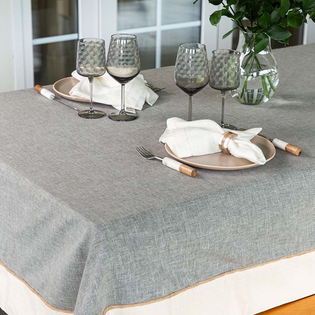 Toalha De Mesa Varkala Cinza e Bege Copa&Cia 1,60 x 2,20 m