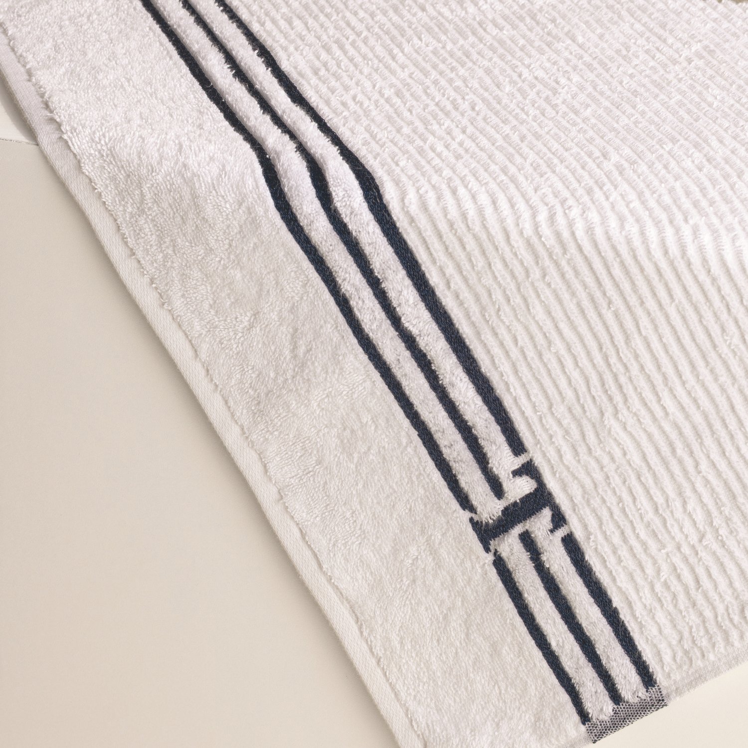 Informações do Produto Tipo: Branco e Marino Linha: Isola Marca: Trussardi Material: 520g / 100% Algodão Características Adicionais: Super absorção / Fio penteado / Barra com T em poliéster Conteúdo: 1 Toalha de Praia 86cm x 160cm Instruções De Lavagem: Lavação a 40ºC / Proibido alvejar / Proibido secar em tambor / Secagem em varal / Ferro de passar com temperatura máxima de 110º C / Proibido lavar a seco.