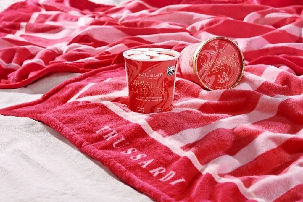A Toalha de Praia Listrado da collab Trussardi + Bacio di Latte traduz a união perfeita entre elegância italiana e suavidade inspirada no universo do gelato. Com 86 cm x 160 cm, ela oferece o tamanho ideal para acompanhar momentos de descanso com conforto absoluto. Produzida em 100% algodão e com gramatura de 470 g, proporciona toque macio, alta absorção e uma experiência acolhedora. O lado superior em veludo realça a estampa listrada com brilho delicado, enquanto a felpa no verso garante secagem eficiente. Seu design leve e sofisticado remete à pureza e à cremosidade que marcam a Bacio di Latte, combinadas ao refinamento atemporal da Trussardi. Cada peça é envolta por cinta, reforçando a apresentação cuidadosa da collab.