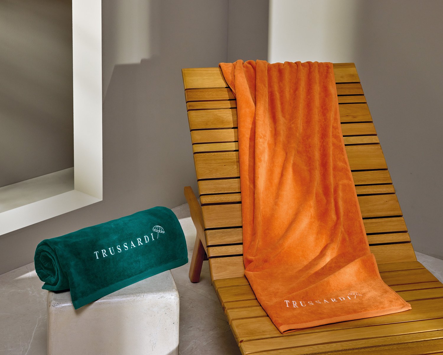As praias de Monterosso al Mare, um tesouro que faz parte do Parque Nacional de Cinque Terre, nos inspiram. Sob o sol do Mediterrâneo e entre os icônicos e coloridos guarda-sóis, a toalha de praia Ombrelli se destaca por seu bordado sobre a textura aveludada de cor vibrante. Seu design minimalista e contemporâneo traduzem toda a sofisticação da marca Trussardi.