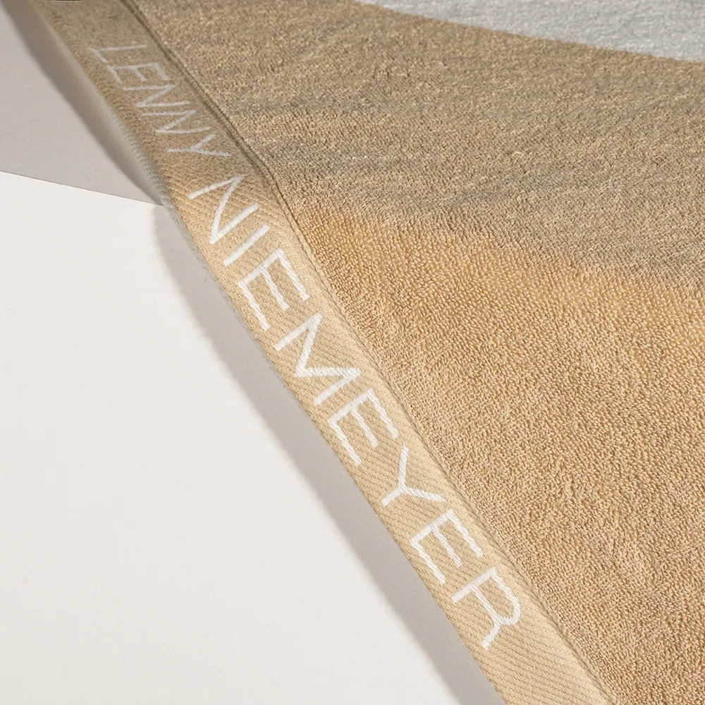 Informações Do Produto Marca Trussardi Linha Trussardi + Lenny Niemeyer Cor Bege Material 98% Algodão, 2% Poliéster Conteúdo 01 Toalha de Praia Gramatura 540g/m² Quantidade de Peças 01 Peça Medidas 86cm x 1,80m Acabamento Super absorção, Pré-encolhida, Fio Dupla Torção, Jacquard fio tinto, Bainha de 4cm com logo Trussardi e Lenny Niemeyer em jacquard, Embalagem dustbag de algodão orgânico certificado plantado no Brasil Desing exclusivo por Lenny Niemeyer