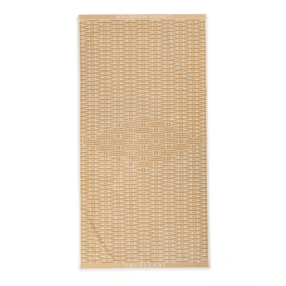 Informações Do Produto Marca Trussardi Linha Trussardi + Lenny Niemeyer Cor Bege Material 98% Algodão, 2% Poliéster Conteúdo 01 Toalha de Praia Gramatura 540g/m² Quantidade de Peças 01 Peça Medidas 86cm x 1,80m Acabamento Super absorção, Pré-encolhida, Fio Dupla Torção, Jacquard fio tinto, Bainha de 4cm com logo Trussardi e Lenny Niemeyer em jacquard, Embalagem dustbag de algodão orgânico certificado plantado no Brasil Desing exclusivo por Lenny Niemeyer