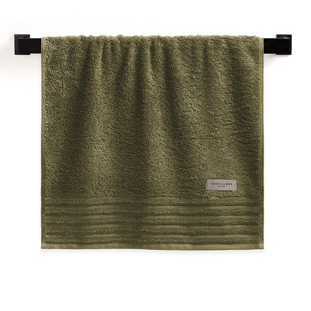 INFORMAÇÕES DO PRODUTO Marca Trussardi Linha Imperiale Cor Oliva Medida 48 x 80 cm Material 100% algodão Gramatura 540 g/m² Acabamento Acabamento pré-encolhido mantém sua forma e beleza após o uso constante. CUIDADOS E USO Lavar com temperatura máxima de 40°c Não alvejar Não secar em tambor Secagem vertical Passar com temperatura máxima 110°C Não limpar a seco.