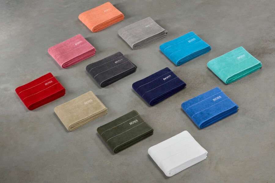 A linha de toalhas e piso Plain apresentam o logotipo da Hugo Boss bordado em fundo liso. A simplicidade do design significa que as toalhas combinam bem com qualquer banheiro. A trama de laços curtos e apertados dá a toalha uma sensação densa e revigorante. Disponível nas cores gelo (branco), concreto, azul marinho, rosa chá, azul acqua e areia, e nos tamanhos banho G, banho, rosto, lavabo e piso.
