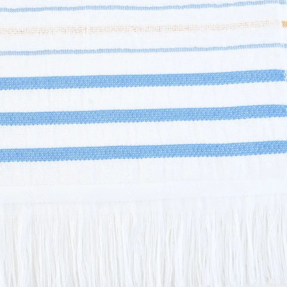 Cor: Branco/Azul Marca: Buddemeyer Luxus Conteúdo: 1 toalha praia 90cm x 180cm Composição: 100% algodão Tipo de Material: 100% algodão Instruções de Cuidado: Cores escuras devem ser lavadas separadas das cores claras / Lavar em água fria ou em temperatura de até 60°C / O melhor sabão para manter as características do produto é o de coco ou neutro / Não colocar sabão diretamente no produto / Evite alvejantes e quaisquer produtos a base de cloro, eles atacam o corante dos tecidos / Não exagere no uso de sabão em pó e use pouco amaciante / Permite secadora em temperatura baixa / Temperatura máxima da base do ferro 110°C / Não usar ferro a vapor / Não lavar a seco