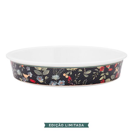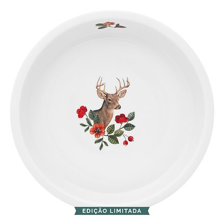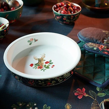 Asse seus pratos com estilo com esta travessa de forno redondo da coleção Winter Wonderland. A assadeira é decorada com um fundo azul escuro em seu exterior junto com elementos alegres e coloridos, na parte de dentro você encontrará um imponente veado junto com belas e delicadas flores. De deliciosos pratos de forno a bolos caseiros, esta assadeira redonda é prática e um lindo acessório em sua cozinha ao mesmo tempo.