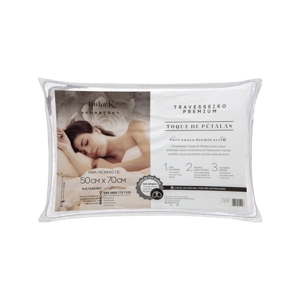 O travesseiro premium toque de pétalas kacyumara tem um toque acetinado suave com enchimento em fibras extra macia e perfeito ajuste garantindo ótimas noites de sono.