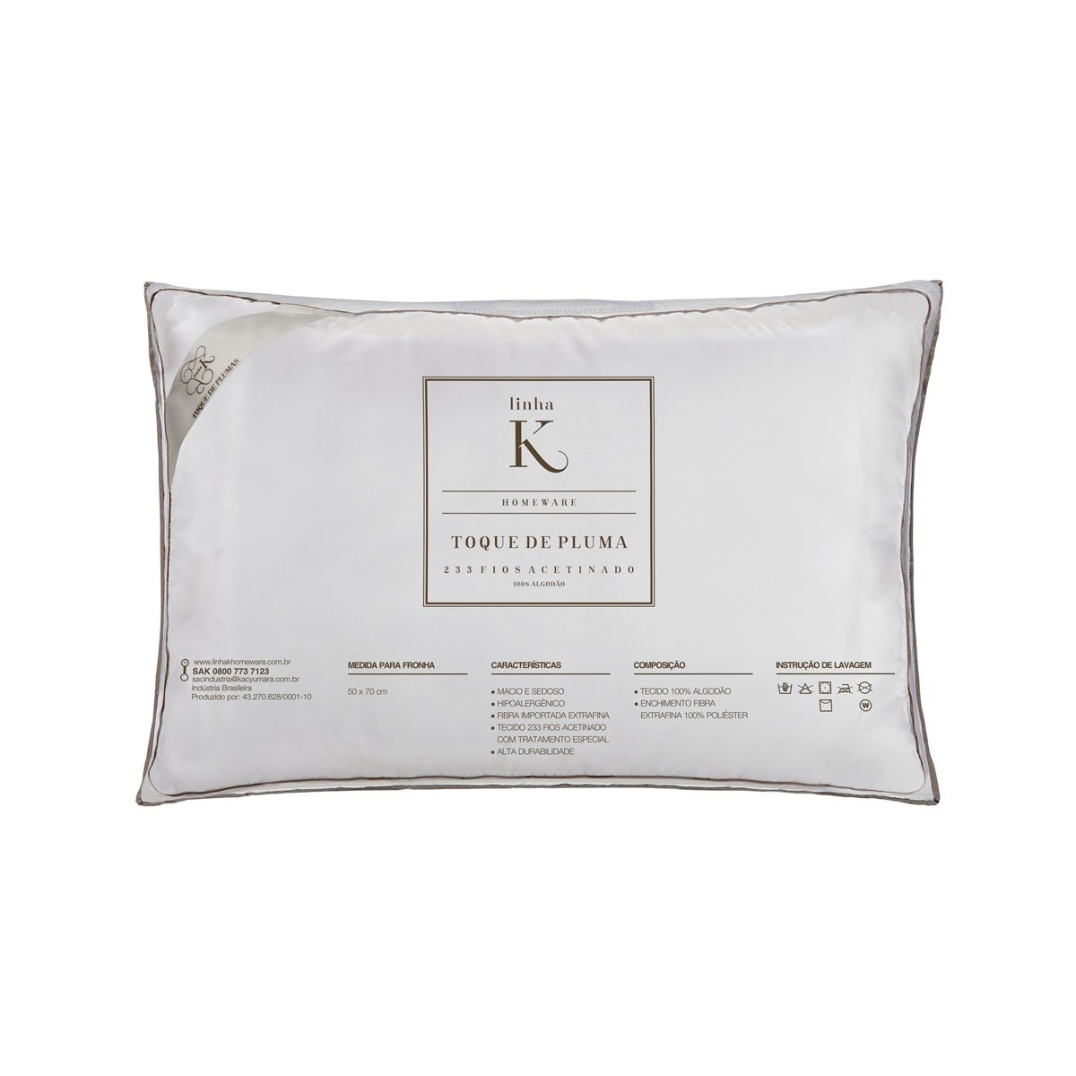 O travesseiro Toque de Plumas Kacyumara, possui o tecido em 233 fios acetinado com tratamento especial garantindo segurança e conforto em suas noites de sono.
