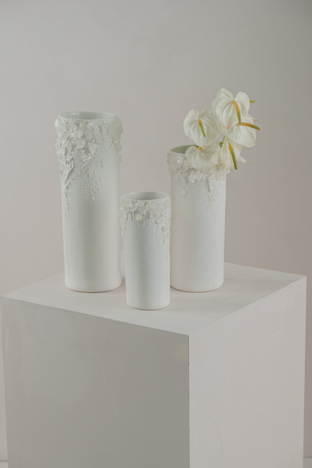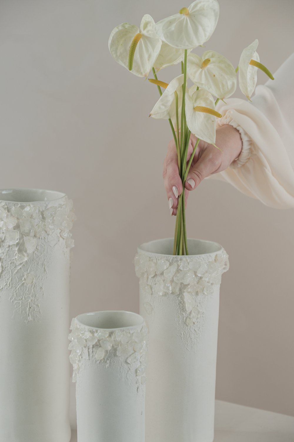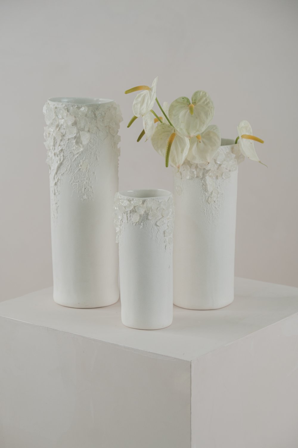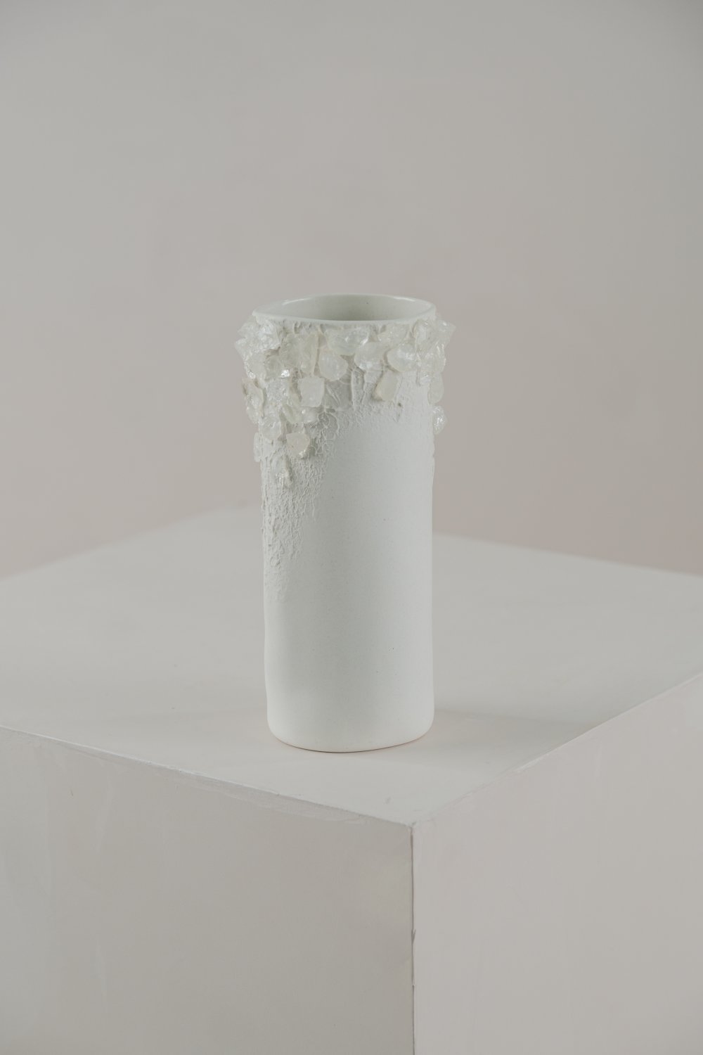 Informações do Produto Marca Atelier Le Motif Material Porcelana e Cristal Série Superfície Produto Vaso Cor Off White Medidas A 20cm - D 9cm Peso 400g