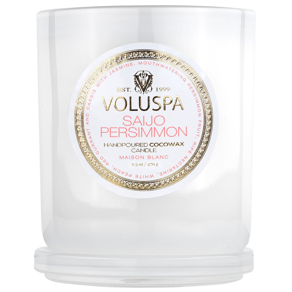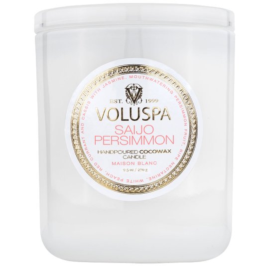 Disponível em recipiente de vidro branco perolado, coberto com uma tampa combinando que mantém a vela livre de poeira quando não está em uso e funciona como base quando acesa. Sua fragrância traz mistura de notas de caqui fresco, pêssego e jasmim.