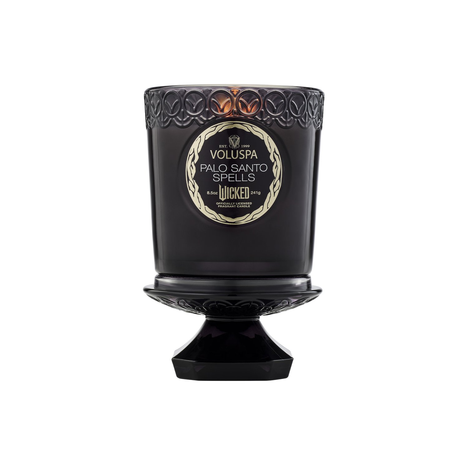 Informações do Produto Marca Voluspa Collab Voluspa x Wicked Aroma Elphaba's Palo Santo Spells Família da Fragrância Amadeirada Picante Fragrância Cravo Triturado, Palo Santo, Incenso em Brasa e Musgo de Carvalho da Montanha Produto Vela Copo com Pedestal Queima 60 Horas Peso 241 g Embalagem Vidro