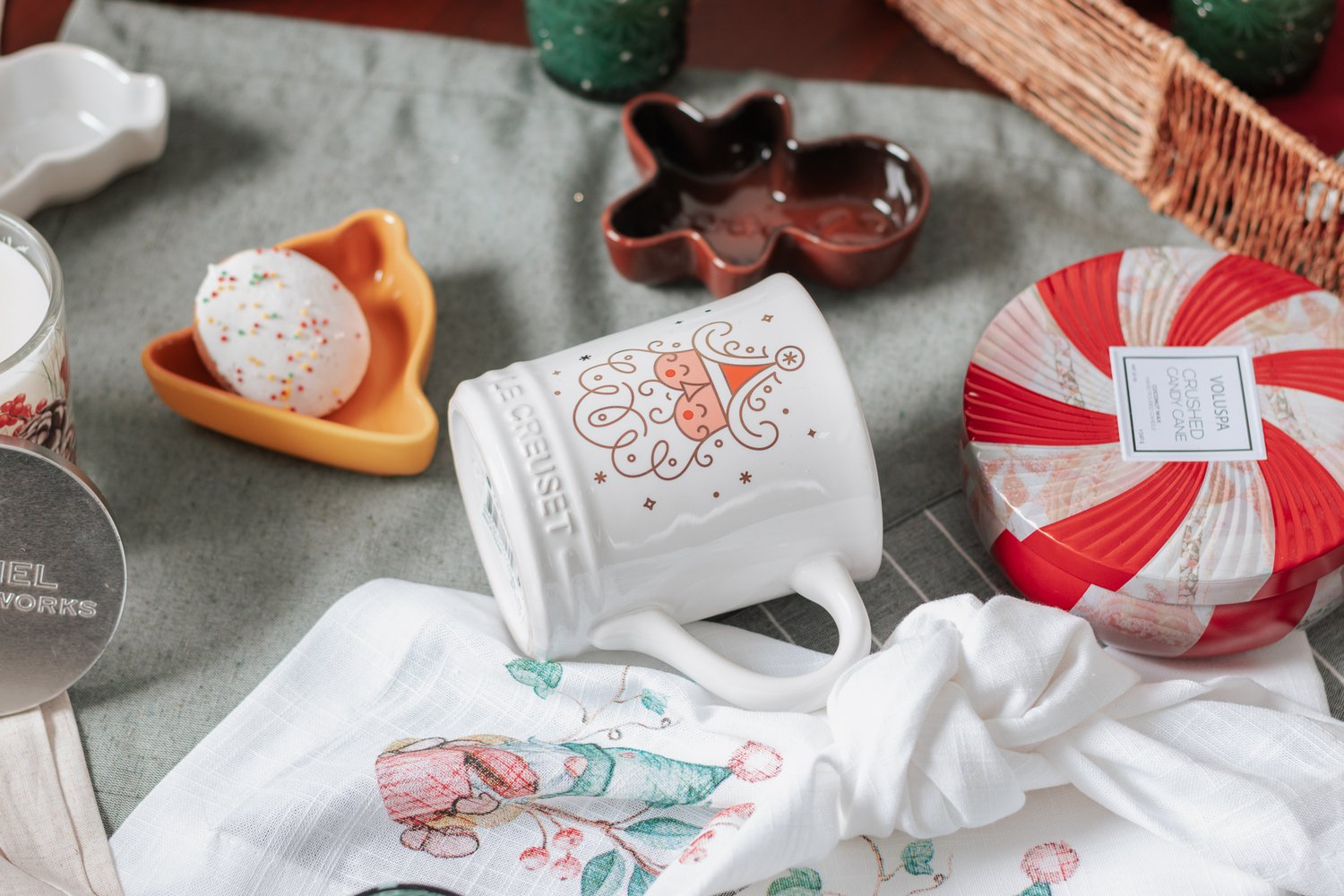 Vela Crushed Candy Cane da Voluspa. Com duração de 60 horas, é perfeita para presentear alguém especial com estilo. Ela possui um design moderno, com pote de vidro trabalhado, sendo ideal para fazer parte da decoração. Fragrância que mistura hortelã fresca misturada com o aroma quente e amanteigado de biscoitos recém assados.