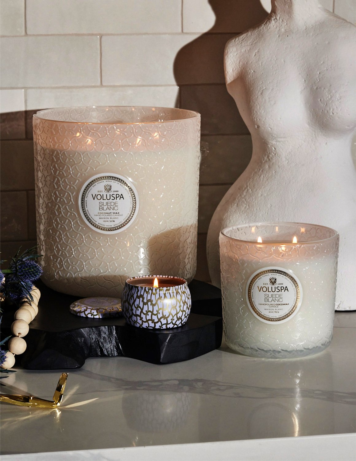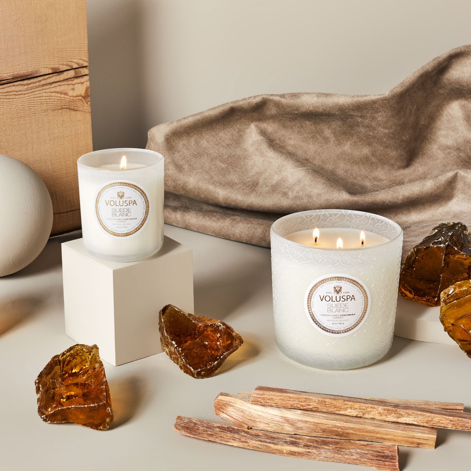 Vela Pote Vidro Luxe Suede Blanc Voluspa 80 Horas