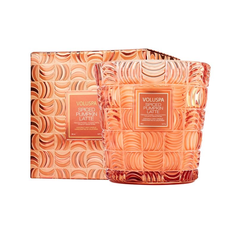 A fragrância best seller da Voluspa, Spiced Pumpkin Latte, foi repaginada para a Japonica Collection com novo frasco texturizado e uma nova cor vibrante — perfeita para aquecer os sentidos nos dias frios ou antecipar o clima aconchegante do outono.