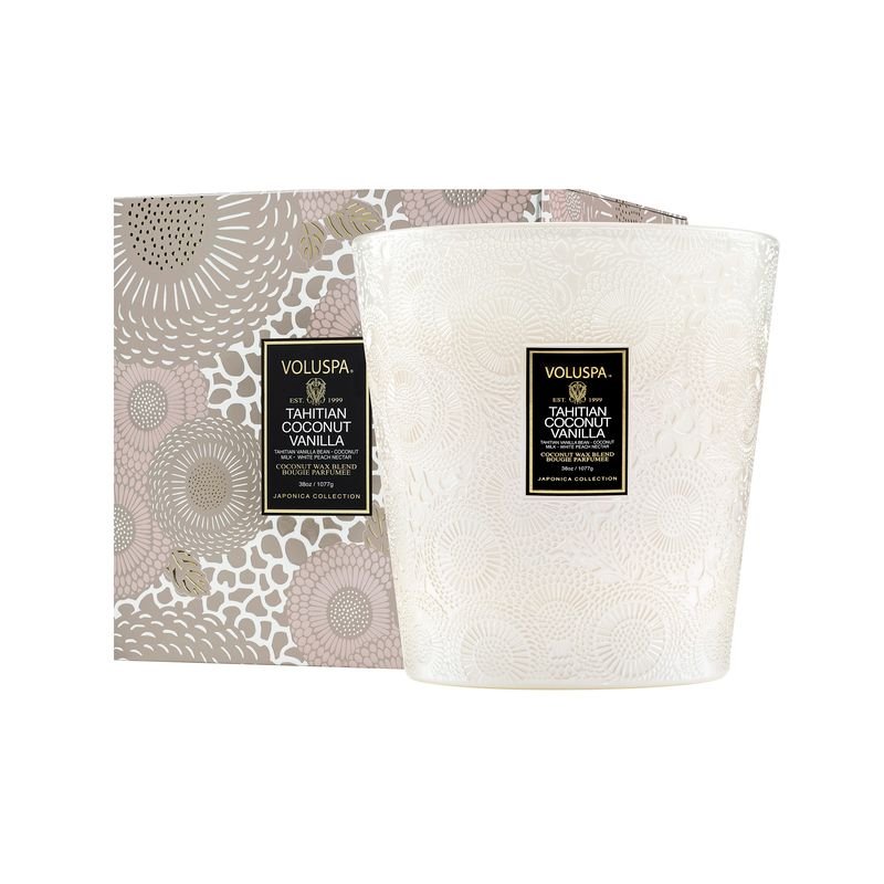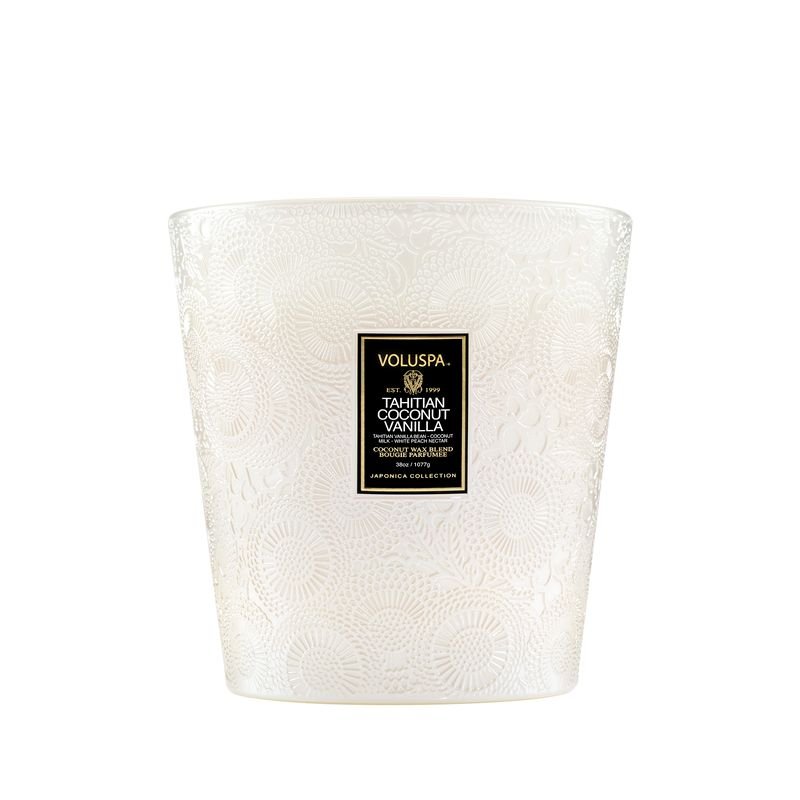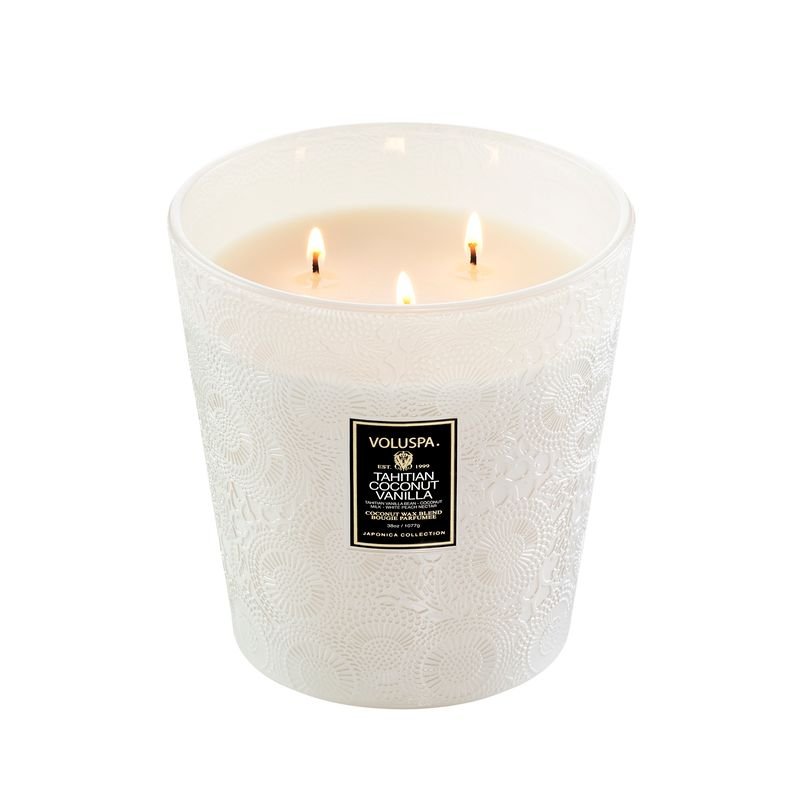 Vela Vaso Pedestal 3 Pavios Tahitian Coconut Vanilla Voluspa 80 Horas